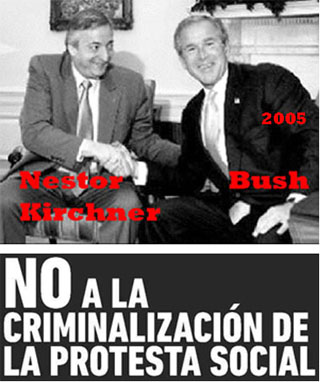 Nenhum banqueiro foi preso ou sequer molestado; ao contrário, para os indignados que protestam, a Argentina da era do casal Kirchner fez aprovar em 2005 no Congresso a legislação anti-terrorista sugerida (e de certo modo imposta) por Bush, que como se sabe se destina principalmente a criminalizar os dissidentes que lutam contra o sistema. A presidente Cristina Kirchner já a fez estrear contra organizações populares